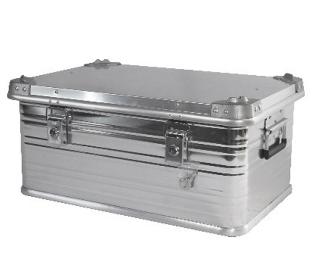 ALUMINIUMSKASSE 76 LITER M/LÅS Solid transportkasse i aluminium. Med bærehåndtak på siden. 2 Lås og nøkler medfølger.Str: 59 x 39 x 41 cm.