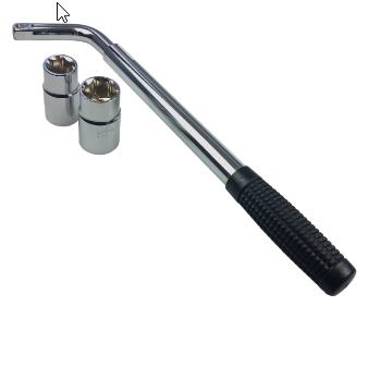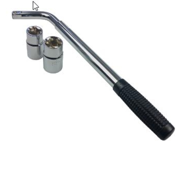 Hjulmutternøkkel/latmannsarm med forlengbart teleskopskaft. Riflet gummihåndtak sikrer godt grep. Leveres med vendbare piper for følgende dimensjoner: 17,19,21 og 23 mm.