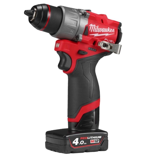 Kompakt M12 FUEL™ 2-trinns borskrutrekker med POWERSTATE™-motor. Kun 151 mm lang. Maks. deriemoment 45 Nm – overlegen kombinasjon av høy effekt og kompakt design. 13-stegs momentinstilling for maksimal fleksibilitet. 13 mm metallchuck. Ubelastet hastighet 0-450/0-1550 rpm. Maks. borkapasitet i tre/stål: 35/13 mm. Batteriindikator, belteklips og LED-lys. Vekt med batteri 1,4 kg. Leveres med 2 x 4.0 Ah REDLITHIUM™-batterier og 80 min. lader i en HD-Boks.