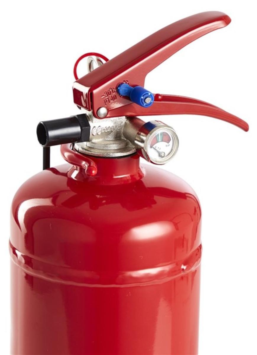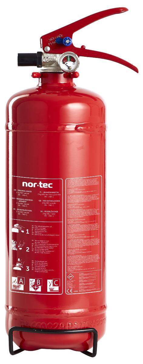 ABC pulver. Effektklasse: 13A 89B C. Høyde: 380mm. Diameter: Ø110mm. Tåler -30°C til +60°C. Med trykk manometer. Beregnet til bl.a. hus, hytter. Slukker brann i fibermaterialer, plast, brannnbare væsker, gasser og elektrisk utstyr.