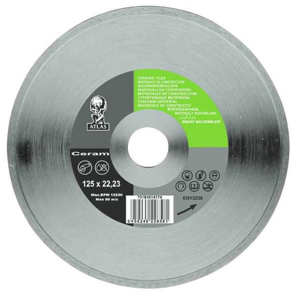 Atlas Ceramic Tiles For kapping av flis og klinker. Sintret hel slett bane. Maks. hastighet 80 m/s. EN13236.