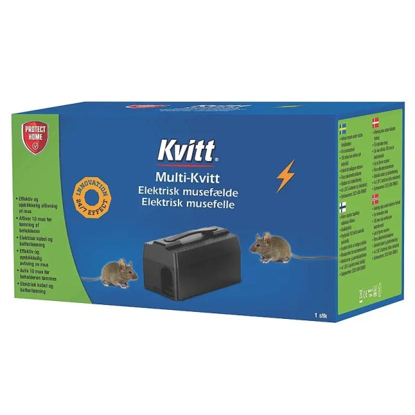 Multi-Kvitt elektrisk musefelle for effektiv og øyeblikkelig avliving av mus. Avliv opptil 10 mus før du trenger å tømme beholderen.
