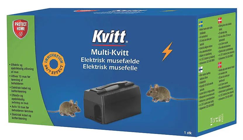 Multi-Kvitt elektrisk musefelle for effektiv og øyeblikkelig avliving av mus. Avliv opptil 10 mus før du trenger å tømme beholderen.