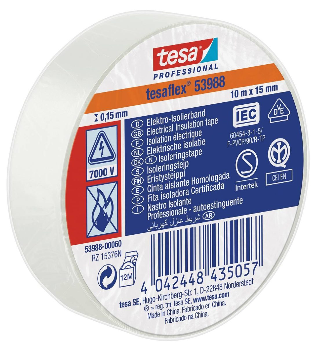 Om du er elektriker, mekaniker eller noen annen type håndverker og trenger en pålitelig isoleringstape er tesaflex® 53988 riktig valg for deg. På grunn av forholdsvis tykke bæremateriale samt den høye fleksibiliteten og fortreffelige hefteevnen, også ved lave temperaturer, er den ideell for arbeider med elektrisitet, som isolering eller merking av kabler. Dessuten kan PVC-tapen også brukes for reparasjoner.