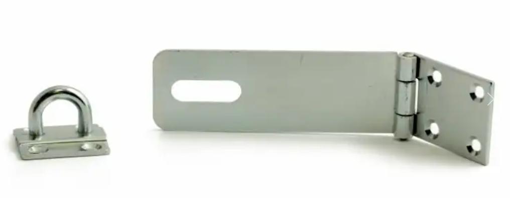 Leddhaspe av galvanisert stål. For henglås med max 12 mm respektive, 15 mm bøyle.