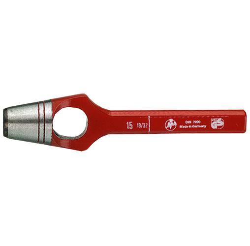 For lær m.m. Med bøyle. Blankpolert, konisk skjærehode. Rektangulært skaft. Lakkert.