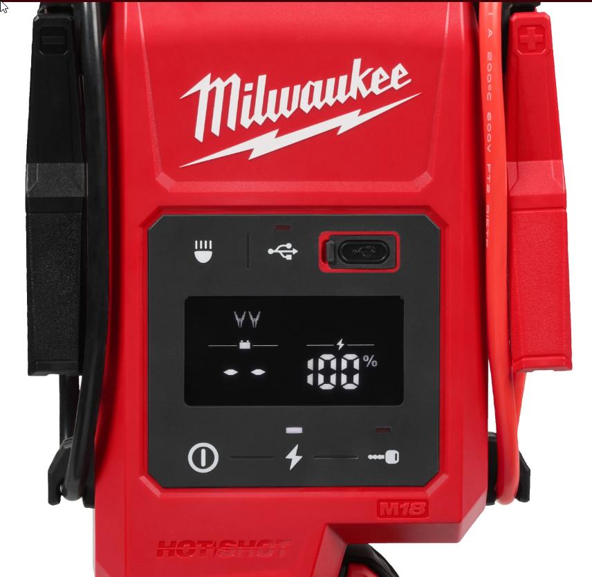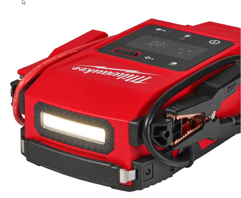 M18™ hjelpestarter leverer opptil 2000 toppampere, noe som gjør det mulig å starte bensinmotorer opp til 8,1 liter og dieselmotorer opp til 3,0 liter
