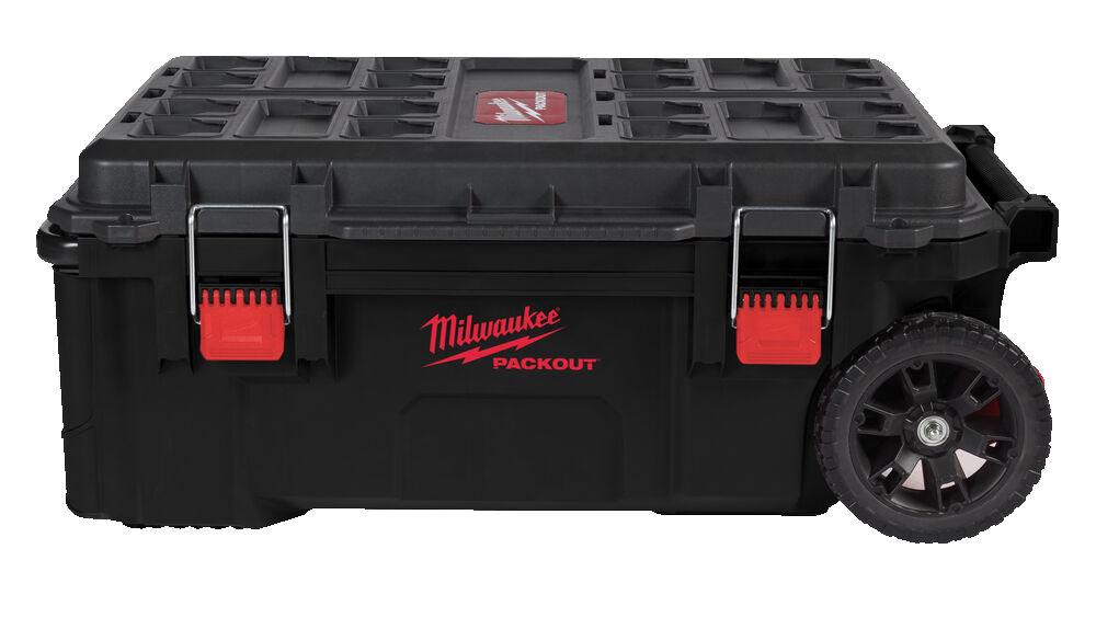 Kompatibel med PACKOUT™ systemet, og gjør det mulig å transportere 2 verktøykasser samtidig. 23 cm terrenghjul sørger for enkelt transport på arbeidsplassen. 113 kg kapasitet. Eksta beskyttelsesforsegling i lokket beskytter verktøyet mot vann og støv fra arbeidsplassen. Ekstra oppbevaringsplass for større verktøy og arbeidsmaterialer. Konstruert med støtbestandig polymerer for holdbarhet på arbeidsplassen. En del av det modulære systemet PACKOUT™.