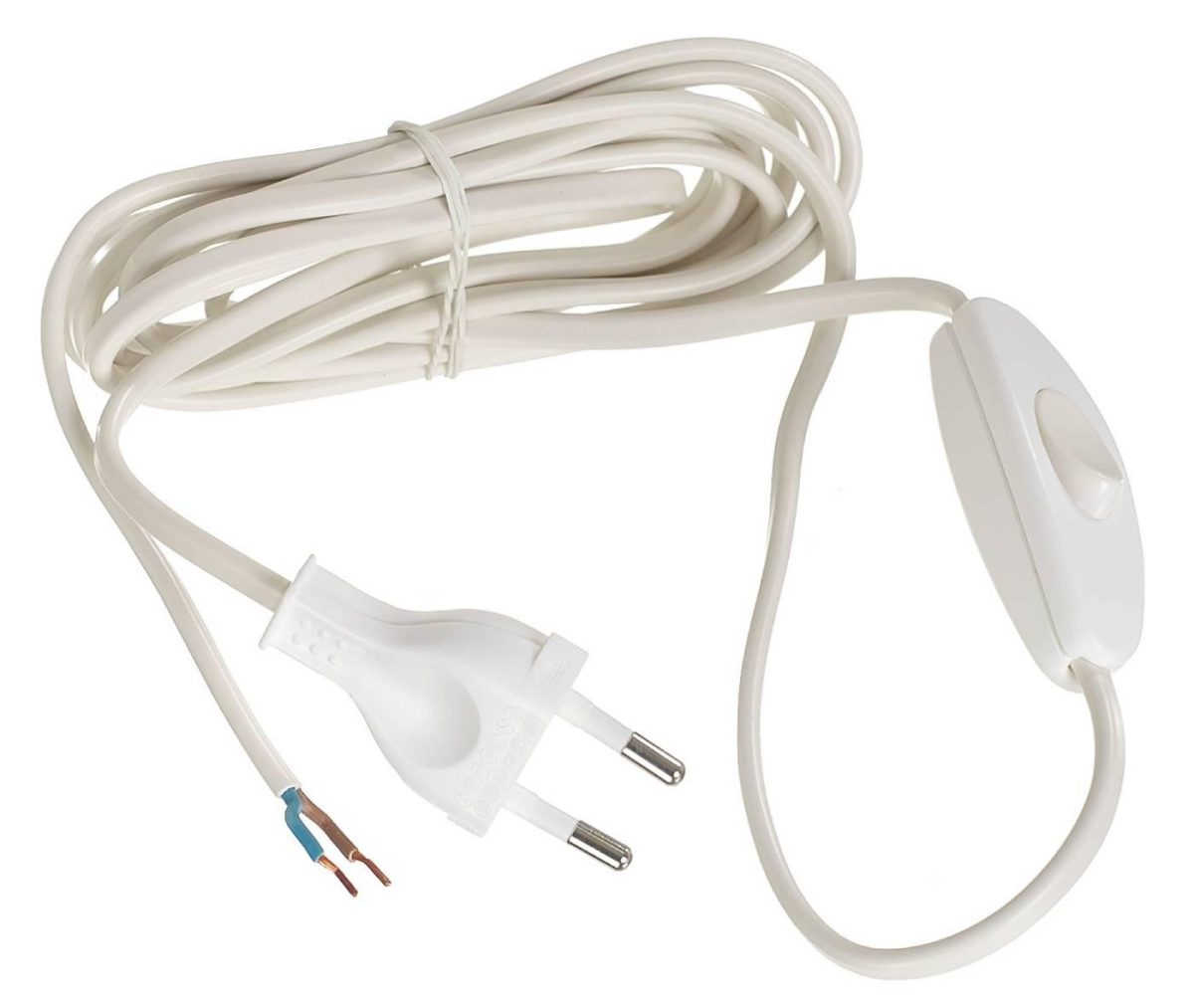 Kabel med bryter og støpsel. Ujordet. 2,5 mtr. slange