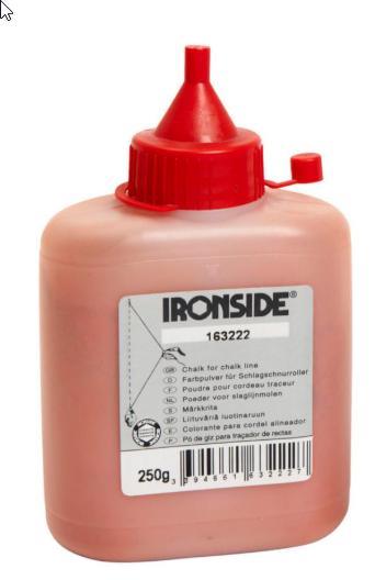 Påfyllingsflaske til krittsnor i praktisk plastkapsel som kan lukkes.