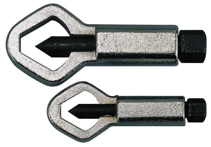Sett med to muttersplittrere. For enkel splitting av hardt fastrustede muttere uten å skade bolt eller gjenge.
