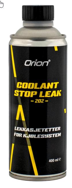 Orion 202 er utviklet for å permanent tette lekkasjer i vannkjølesystemer i alle typer kjøretøy, varmevekslere, kompressorer, stasjonære maskiner og utstyr, marine osv. Orion 202 kan tilsettes mens utstyret er i drift slik at man unngår kostbar nedetid. Orion 202 tetter radiatorer, slanger som lekker, piplende pakninger, sprekker i motorblokker og utette vannpumper. Den spesielle formelen holder de aktive ingredienser finfordelte, uten å klumpe seg, og klar til å tette lekkasjer på et øyeblikk. Da Orion 202 vil permanent tette lekkasjer, er det ikke nødvendig å skifte ut deler eller pakninger på grunn av mindre lekkasjer. Orion 202 bidrar også til å hindre korrosjon og smører vannpumper. Orion 202 er meget økonomisk. En dose vil vare på ubestemt tid. Selv om kjølesystemet tømmes og fylles på nytt, vil Orion 202s virkning være intakt og fortsatt tette foregående lekkasjer.