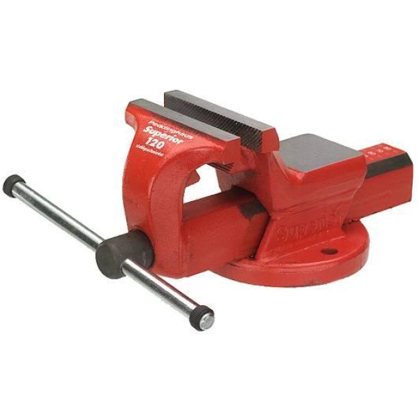 Type Superior. Smidde kjever av stål. Med faste, brede rørbakker – under de plane bakkene. Slipt, helt innkapslet spindel med dobbel trapesformede gjenger. Med ambolt.