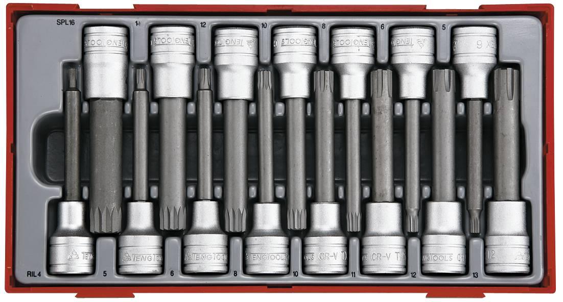Sett med 15 deler. Inneholder 100 mm lange Ribe- og XZN-pipebits (1/2″ firkantfeste).