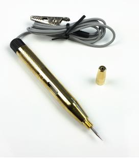 Prøvelampe for feilsøking av elektriske kretser. Fungerer på 6-12-24 volt. Med beskyttelseshette og jordingskabel med krokodilleklemme. For reservepære se varenummer: 01146.