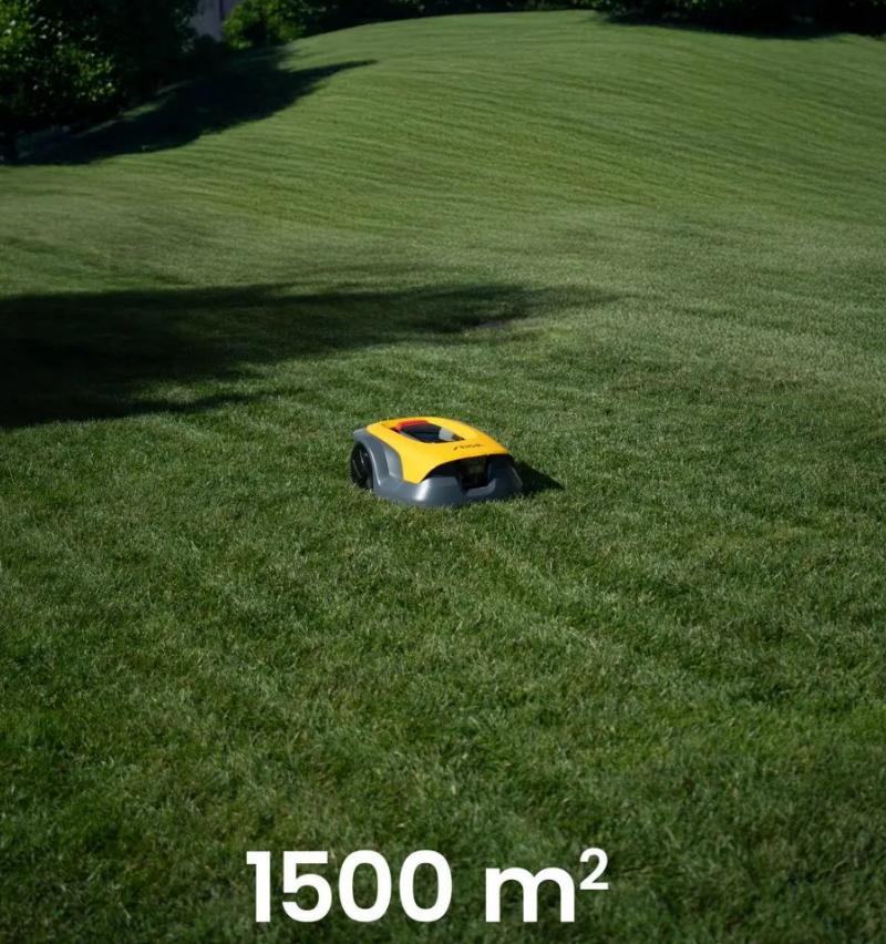 Robotklipperen manøvrerer uanstrengt i mellomstore hager, og håndterer både krevende partier og bratte skråninger med en stigning på inntil 45 % (24°).