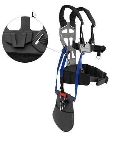 Denne selen gir god avlastning for overkroppen og armene takket være enestående vektfordeling mellom skuldrene, mellom brystet og ryggen og fra skuldrene til hoftene. Utstyrt med et tilbehør til batteriholderen, slik at du enkelt kan ta med et ekstra batteri.