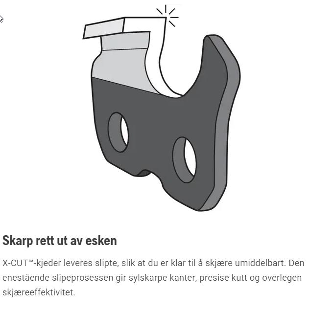 X-CUT S35G er designet og produsert av Husqvarna. Kjedet er spesielt egnet for kravstore fagfolk og forbrukere til daglig profesjonell bruk. Med robust kjede som varer, enestående holdbarhet, lite strekk og høy skjæreeffektivitet er det laget for å gjøre ytelsen bedre enn noensinne.