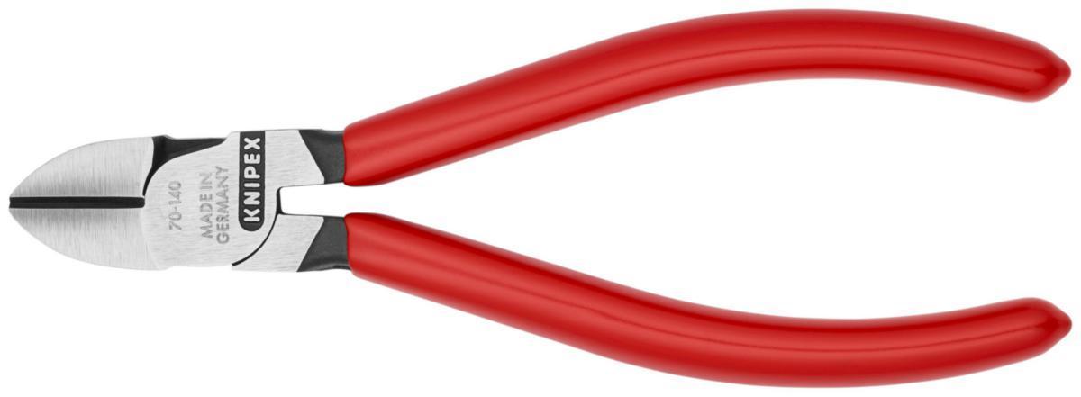 Den uunværlige sidekutter for tallrike bruksmuligheter. Høyverdig materiale og eksakt bearbeiding for lang brukstid. Presisjons-skjæring for myk og hard tråd, eksakt snitt på skjærespissene også for tynne Cu-tråder. Skjær ekstra induktivt herdet, skjærhardhet ca 62 HRC. Slank hodeform for bruk i vanskelig tilgjengelige arbeidsområder. Vanadium elektrostål, herdet i olje og temperert. Form: Med fasett.