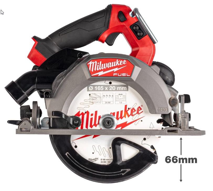 MILWAUKEE® M18 FUEL™ dypkutt sirkelsag er utviklet for å levere maksimal kappkapasitet takket være et trinnreduksjonsgir som gir 66 mm kuttedybde med et blad på 165 mm i diameter.