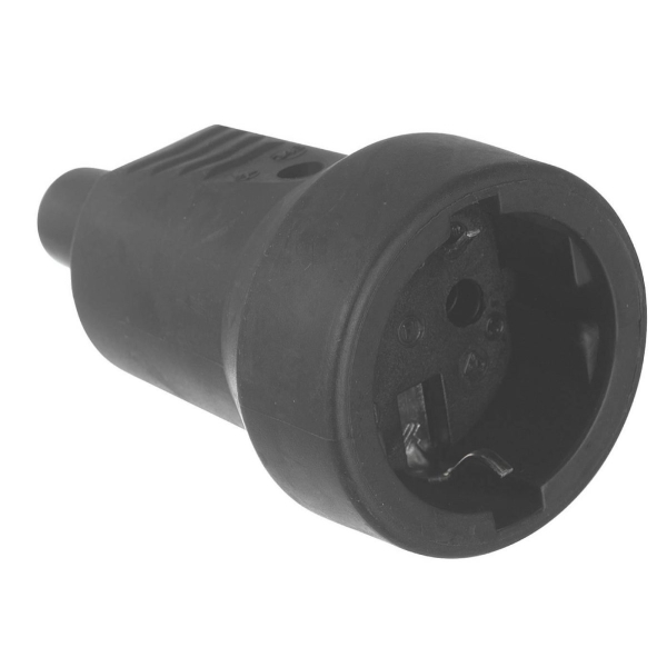 Skjøtekontakt gummi m/jord og brytevern, Grunda