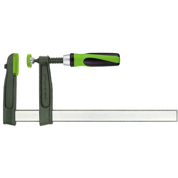 Av adusert støpegods. Skinne av glansforsinket stål. Kraftig flatgjenget, brunert skrue med plastbeskyttet trykkskive med kuleledd. Med tokomponentshåndtak.