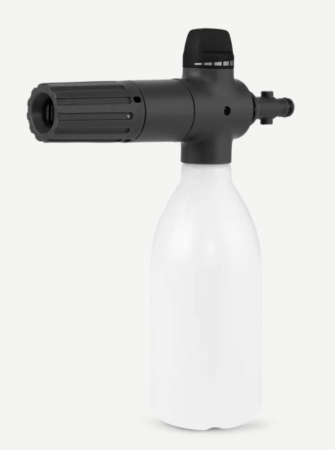 FS 400 er en svært effektiv skumsprøyte med utmerket skummende evne for optimal dosering avhengig av oppgaven. Designet for å gi enkel justering av mengden vaskemiddel og skum. FS 400 kan festes direkte til høytrykkspistolen for et kort, letthåndterlig verktøy.