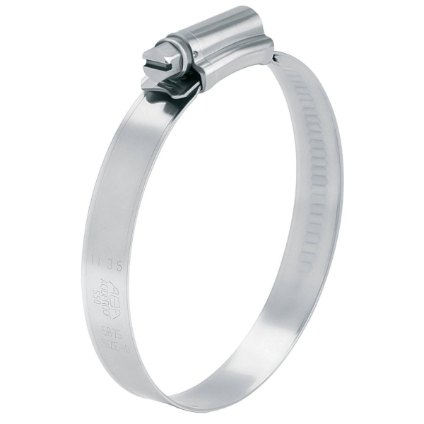 ABA Original syrefast slangeklemme besitter en høy spennkraft og har en høy bruddmoment. Huset er presset av et rør i det holdbare stålet SS 2343/AISI 316. Klemmen anbefales der beste korrosjonsvern trengs. For sporbarhet stemplas hver klemme med produksjonsuke og år. Alle deler i syrefast stål 1.4404/AISI 316/SS2343. Min. tid til rødrust er 2000 timer. Kan sammenlignes med W5.