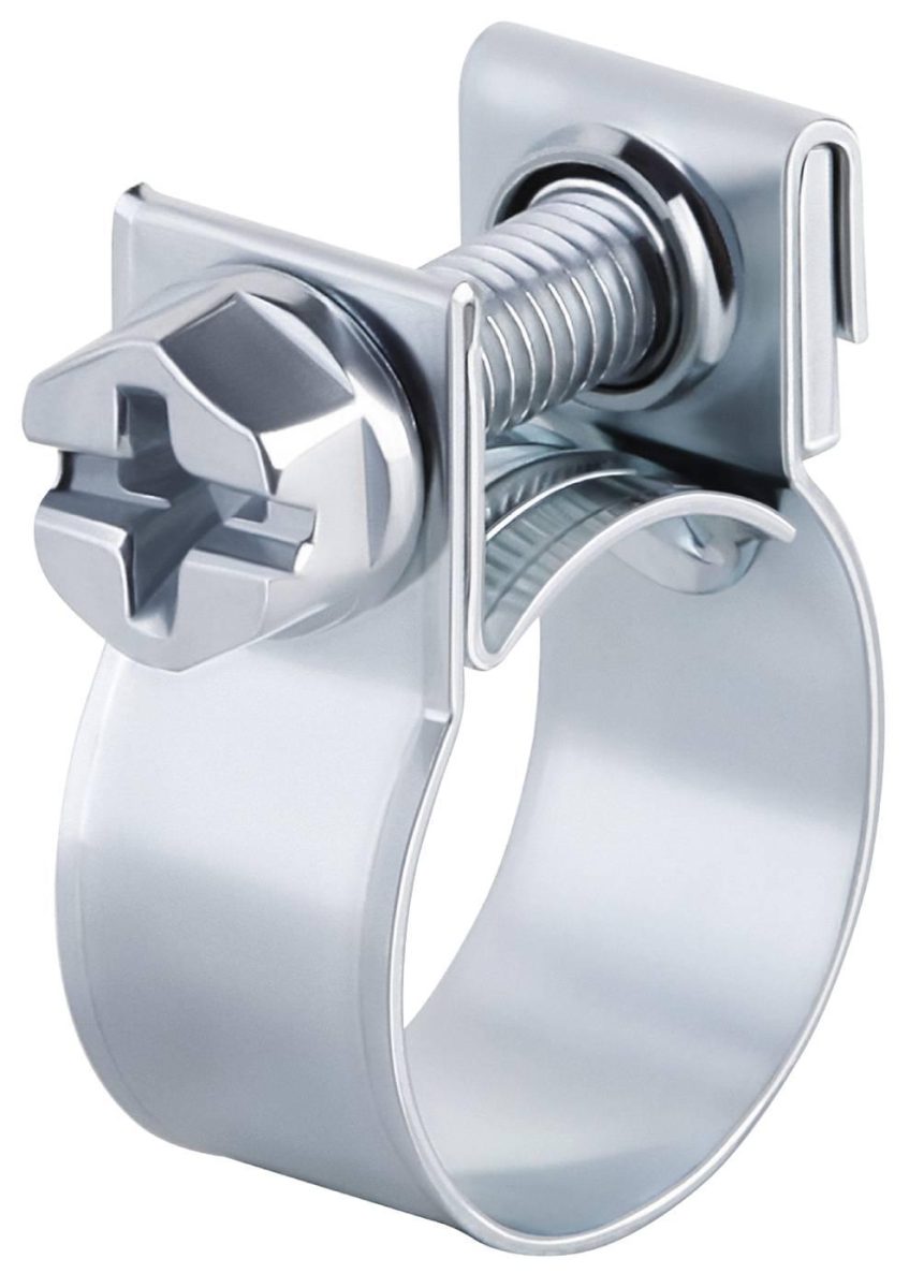 Bruksområde og egenskaper: Spesielt egnet er ABA Mini for små og tynnveggete slanger. Oppbøyde båndkanter for å beskytte slangen mot innskjæringer og bruddanvisninger. Båndet er av ett stykke uten sveisepunkter. Firkantmutteren holdes i stilling også om skruen fjernes. 7 mm sekskant skruehode med både spor og kryss. Egnet slangeskrutrekker art. nr 0105-05006. Elforzinket. Standard – S10 / W 1.