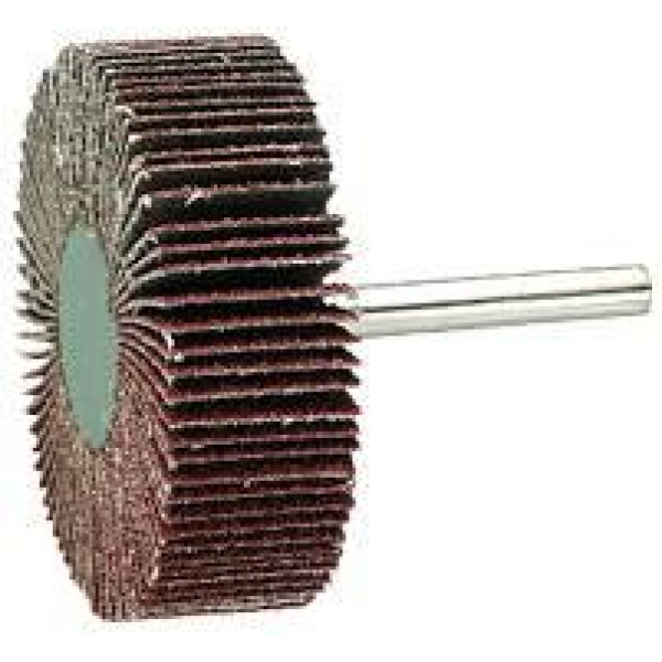 Lamellslipestift med slipeduk radialt innfestet i bakelittnav for sliping av tre, maling og metall. For sliping av profilerte flater og innersliping. Skaftdiameter 6 mm.