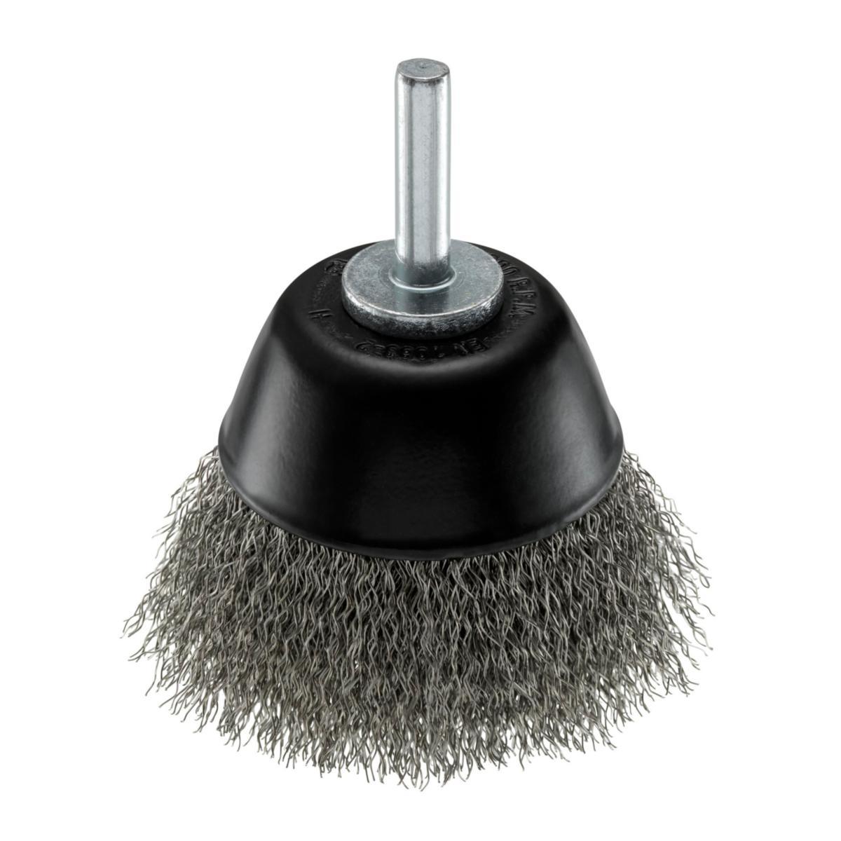 Med krusede tråder for lettere rengjøringsarbeid og overflatebehandlinger. Den er også egnet for fjerning av belegg og rust samt rengjøring av overflater. Med 6mm aksel for feste i f.eks. boremaskin. Kruset, rustfri ståltråd.