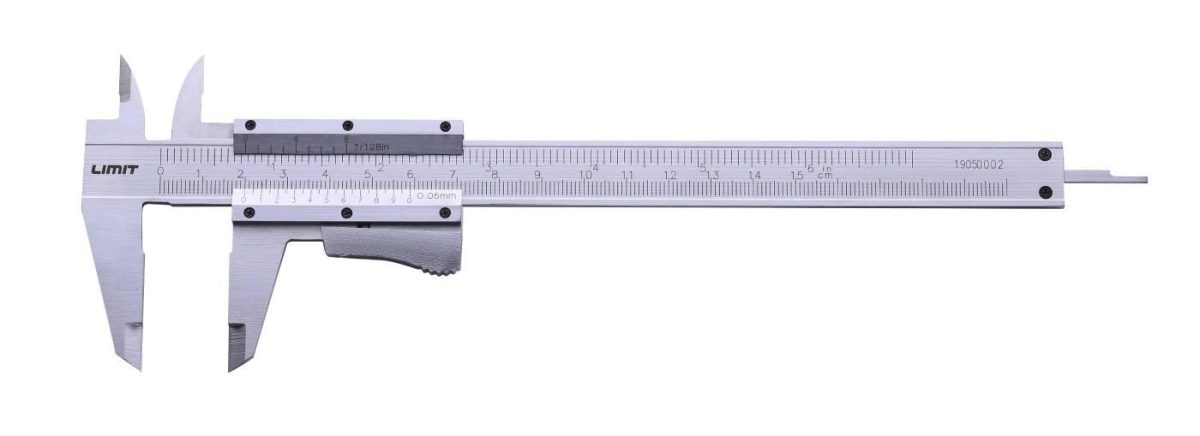 Av herdet verktøystål. Gradert i millimeter og eng. tommer. Nonieskala for 1/128” og 1/20 mm. Utstyrt med dybdemål og spisser for innvendig måling. Hurtiglås. DIN 862.