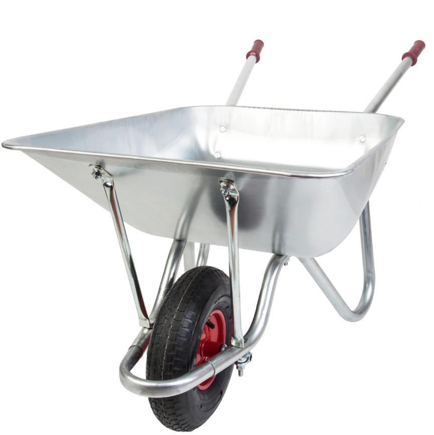 Robust og kraftig trillebår for selvbyggere, håndverkere og entreprenører. Passer for de større oppgavene i hagen og rundt huset. Stor kasse med støttestag tåler mer last, og tippebøylen foran hjulet gør det enklere å tippe av lasset. Båren har helpresset galvanisert kasse. Leveres umontert.