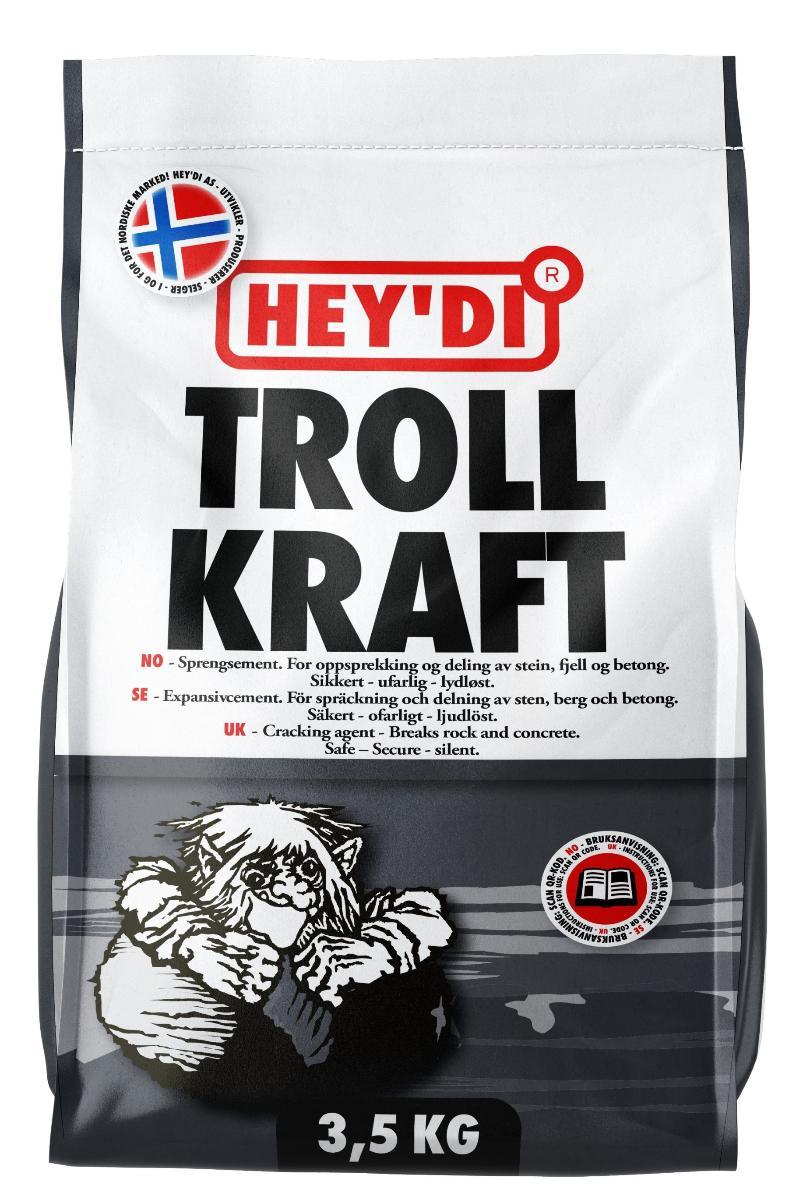 Heydi Trollkraft er en spesialsement som etter utblanding med vann, utvikler et enormt ekspansjonstrykk – opptil 9000 tonn/m2 som bevirker lydløs og sikker oppsprekking og demolering av fjell og betong. Heydi Trollkraft utvikler ikke gasser og er ufarlig ved korrekt bruk.