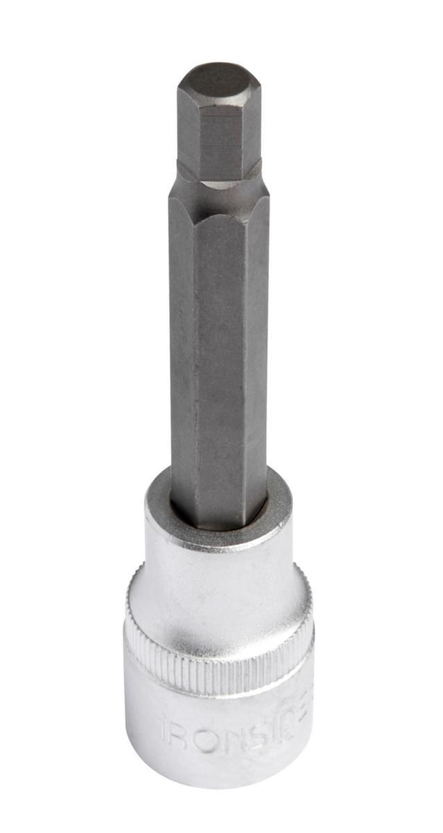 Av mattforkrommet kromvanadiumstål. Ikke beregnet for slående verktøy. 1/2″ firkantfeste. For sekskantspor. Total lengde 100 mm.