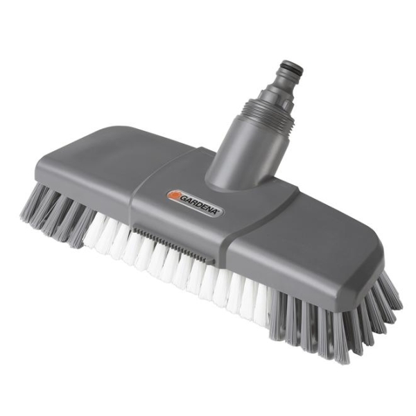 Comfort skrubbebørste kan kobles til vann, og passer til alle originale GARDENA Cleansystem-håndtak for rennende vann. GARDENA Comfort skrubbebørste fjerner selv vanskelig smuss. Det 27 cm brede originale GARDENA Cleansystem-tilbehøret med bust i varierende lengde garanterer intensiv rengjøring, spesielt på ujevnt underlag, i skjøter og fordypninger. Det spesielle flate spraymunnstykket og skrapekanten gir enda bedre rengjøring. Comfort skrubbebørste er spesielt velegnet for grundig rengjøring av robuste gulvflater, som terrasser, heller, oppkjørsler osv. Rengjør enkelt og effektivt – med GARDENA Comfort skrubbebørste.
