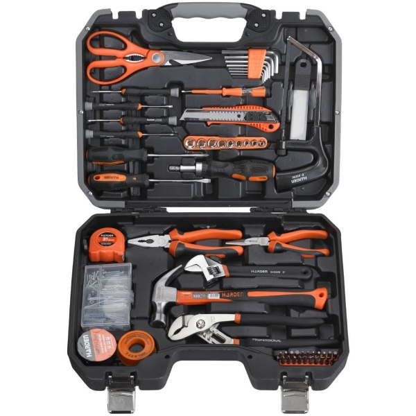 Verktøysett, chrome vanadium. Det perfekte settet for leiligheten eller campingvognen. Pakket i en plasteske.